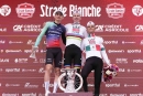 De winnares van de Strade Bianche Women Elite Crédit Agricole, Elise Chabbey, zei tijdens de persconferentie: Het is fantastisch om hier te staan als winnares van een wedstrijd waar ik altijd al van heb gehouden. Het is ook ongelooflijk, want het plan was om samen met Demi te winnen. Ik moest anticiperen, en toen we beseften dat ze ons niet meer kon inhalen, besloten we ons plan te wijzigen en gewoon te proberen de finish te halen. Franziska en ik hebben geweldig werk geleverd en in de finale besloot ik puur op instinct alles te geven. Ik wist dat als ik als eerste uit de laatste bocht zou komen, ik zou winnen, en dat is precies wat er gebeurde. Het zal even duren voordat ik volledig besef wat ik heb gedaan. Foto: Elise Chabbey met de winnaarstrofee. ©LaPresse